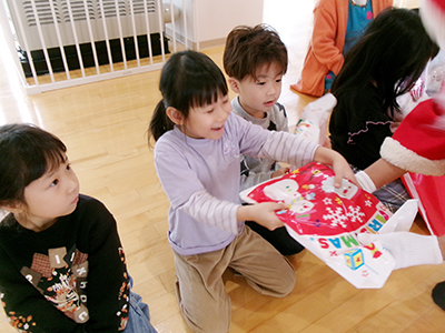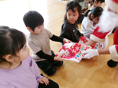 一方12月は子どもたちが1番楽しみにしていたクリスマス会も。サンタさんに会って、プレゼントをもらって、ゲームをして…そしておいしい給食!