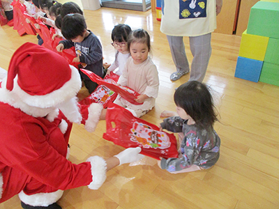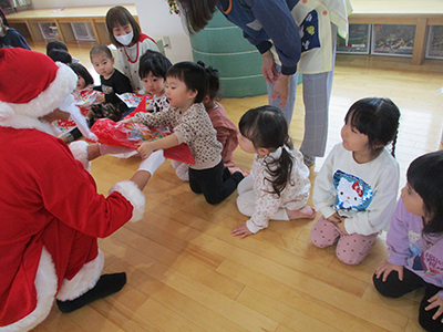 12月は発表会が終わり、ゆったりとすごすことができました。そして、クリスマスに向けてワクワクしているお友達もたくさんいました。プレゼントのお話で盛り上がっていたみかん組さんでした!