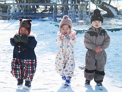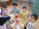 あっと言う間の1年でしたが、子どもたちは少しずつできることが増え、自分でズボンをはいたり、口をふいたり、エプロンをとったりと、成長を感じています。今年もよろしくお願いします!